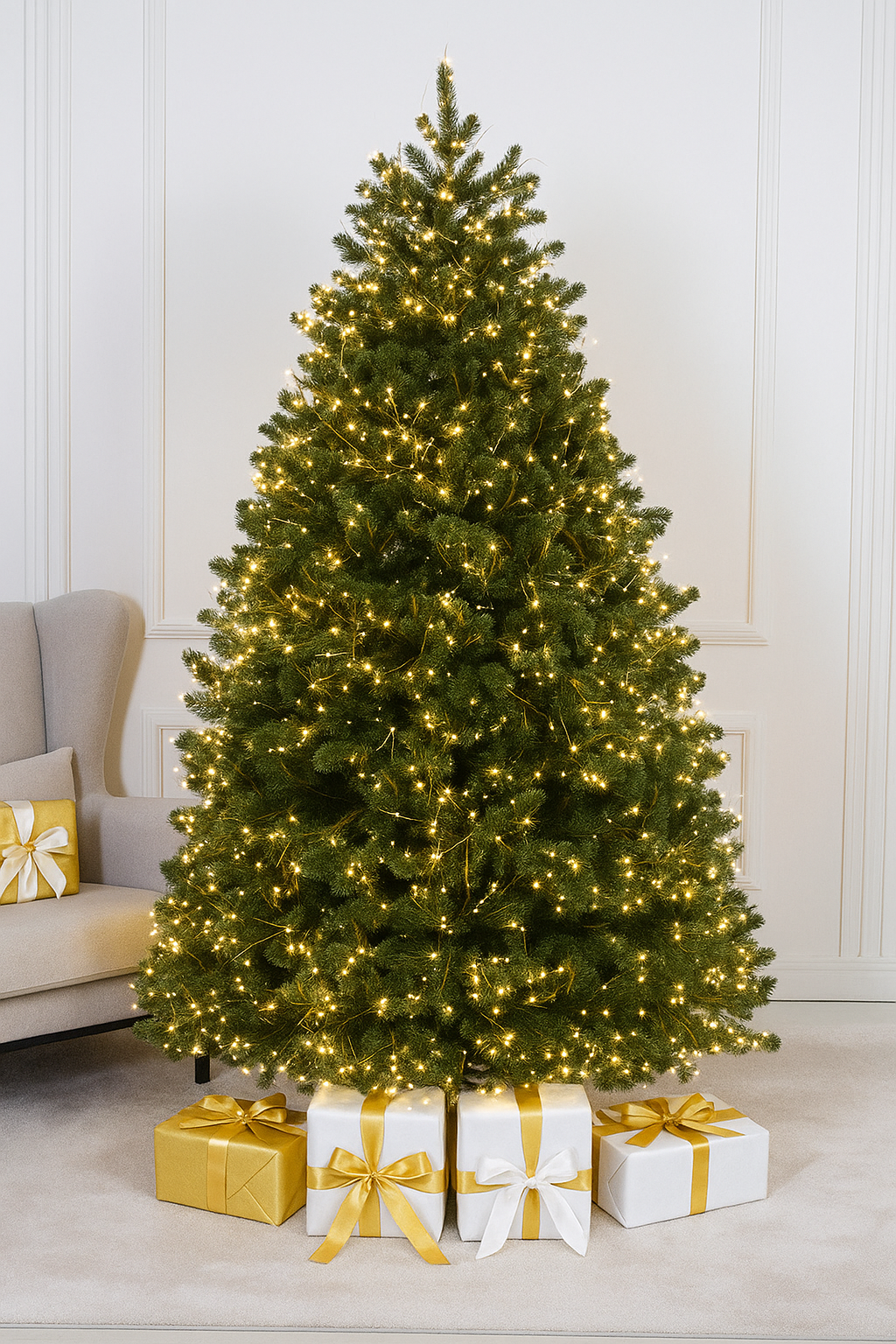 Découvrez notre sapin de Noël "NOBLE SAPIN ROYAL" haut de gamme. Chaque sapin est une œuvre d'art, moulé à partir de polyéthylène (PE) 100% pur, un matériau reconnu pour sa durabilité et son réalisme exceptionnel. La texture des branches imite à la perfection celle d'un vrai sapin.